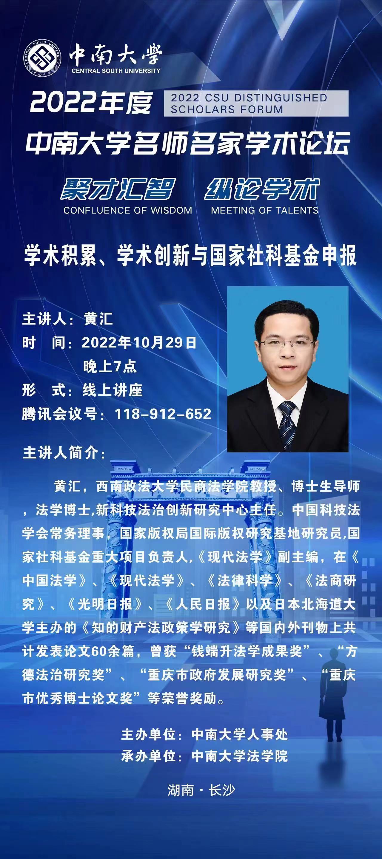 讲座预告 | 黄汇:学术积累、学术创新与国家社科基金申报