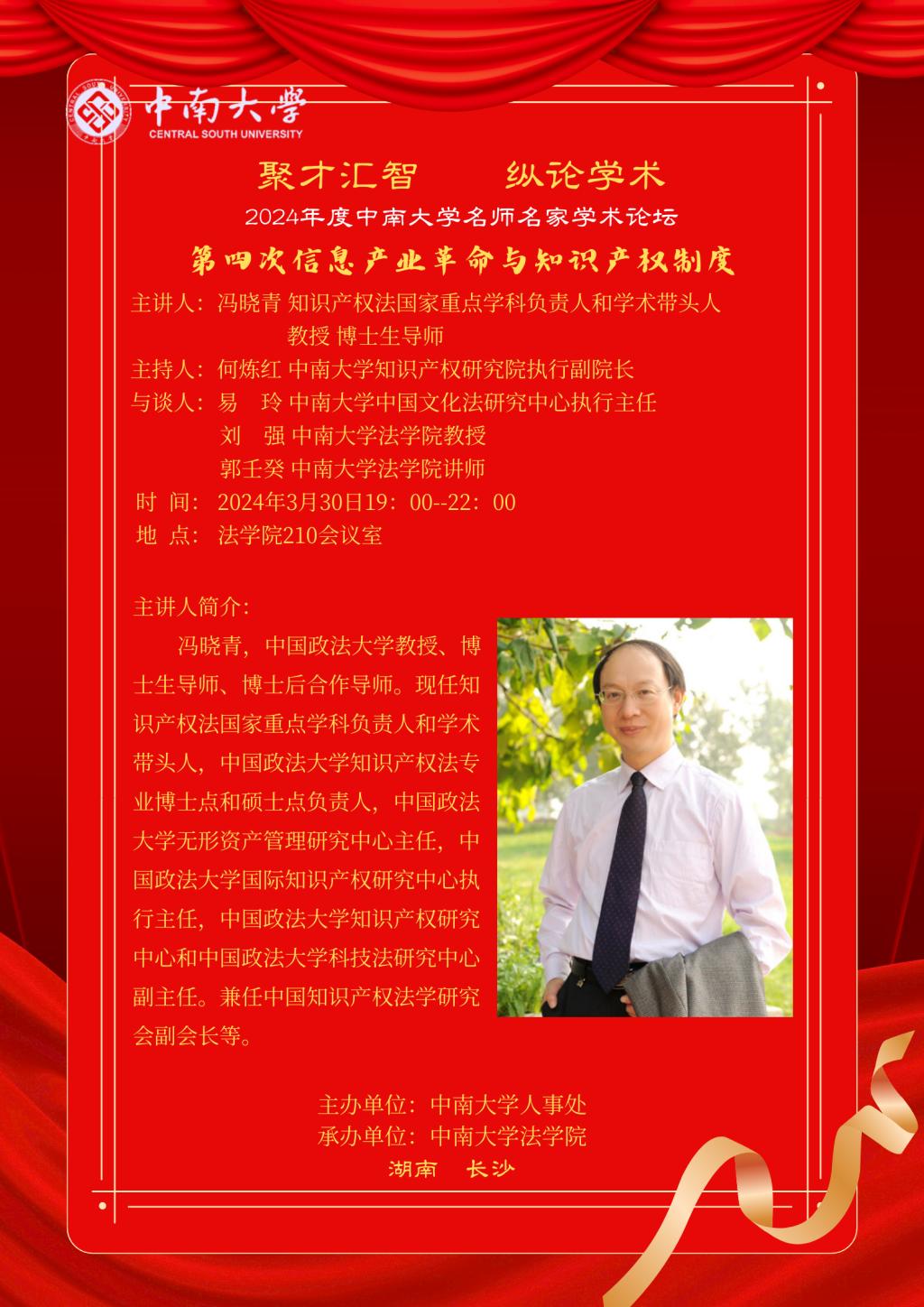 主 讲 人:冯晓青 知识产权法国家重点学科负责人和学术带头人 教授 博士生导师